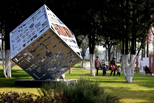 主題園內的「美好生活 民法典相伴」主題雕塑