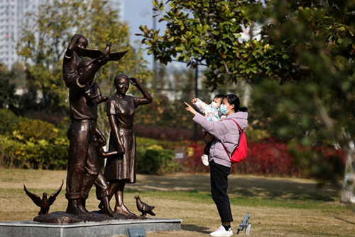 主題園內的「民法典守護未成年人成長」主題雕塑