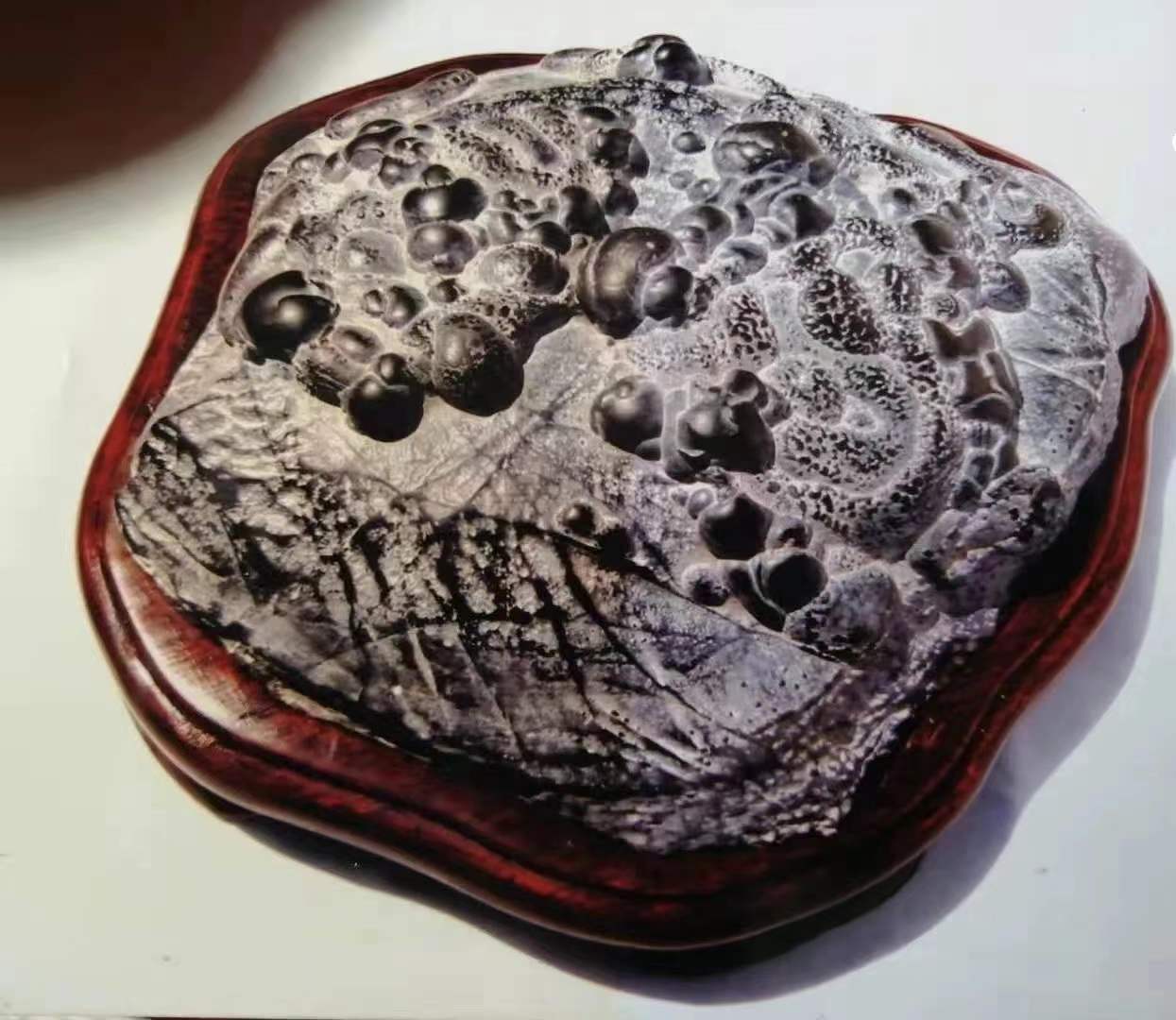 「靈璧一石天下奇,聲有青銅色如玉」。作為我國四大觀賞石之一,盛產於安徽省宿州市靈璧縣的靈璧石,早在清朝乾隆皇帝期間,就被御封為「天下第一石頭」。靈璧石質地細膩溫潤,滑如凝脂,石紋褶皺纏結、肌理縝密,石表起伏跌宕、溝壑交錯,造型粗獷崢嶸、氣韻蒼古,是天然形成並具有藝術觀賞價值的奇石。作為宿州市「靈璧賞石藝術」非物質文化遺產保護項目代表性傳承人,任樹文收藏、研究靈璧石已有30餘載。基於對靈璧石各石種的命名、分類等方面的研究,任樹文編製《靈璧石一覽表》,為靈璧石賞石藝術提供重要參考。