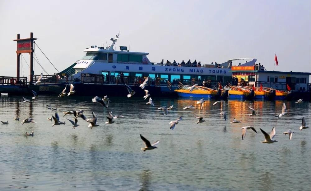 在巢湖姥山島景區湖面,遠遠就能聽見紅嘴鷗發出的「啾啾」鳴叫聲,成群結對的紅嘴鷗或結伴展翅,或俯衝覓食。來此地旅遊的遊人,他們開心地與紅嘴鷗互動拍照,人和紅嘴鷗的互動,其樂融融。