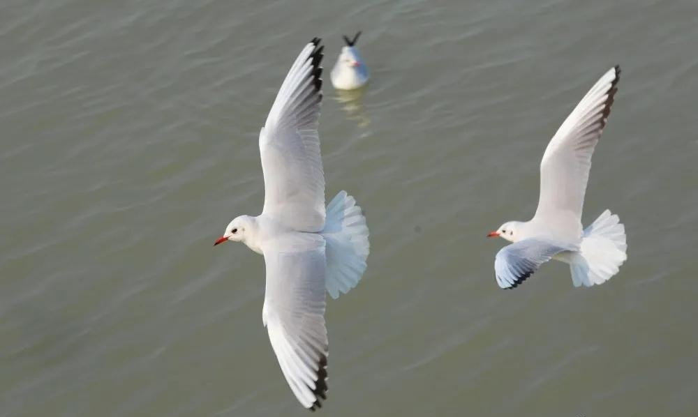 紅嘴鷗,俗稱「水鴿子」,體形和毛色都與鴿子相似,嘴和腳皆呈紅色,身體大部分的羽毛是白色,尾羽黑色。其數量大,喜集群,一般生活在江河、湖泊、水庫、海灣,主食魚、蝦、昆蟲及水生植物。