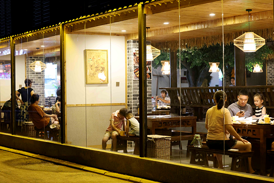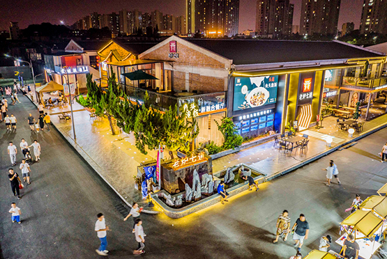 7月21日晚,在由老廠房改造的安徽省合肥市長江180藝術街區,市民在餐飲消費