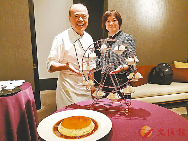盧偉強行政總廚(左)設計的摩天輪甜品,總經理李靖文也讚正!