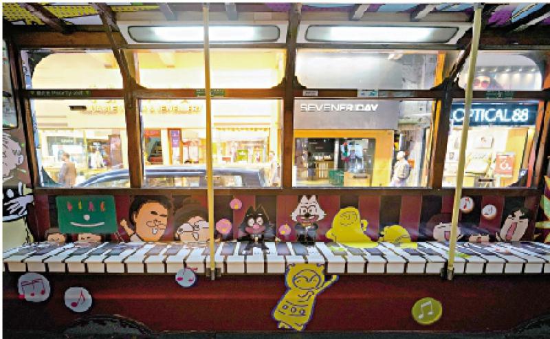 要說可利用其融入藝術的公共空間,電車定是最具香港特色的公共空間之一。今年年初,一眾承載不同年代人回憶的香港動漫角色就曾「現身」電車,讓乘客一邊穿梭城市,一邊品味港漫今昔,為人熟悉的「哨牙珍」和「老夫子」還以1:1比例的3D模型「坐」上電車座位,陪乘客看城市風景。