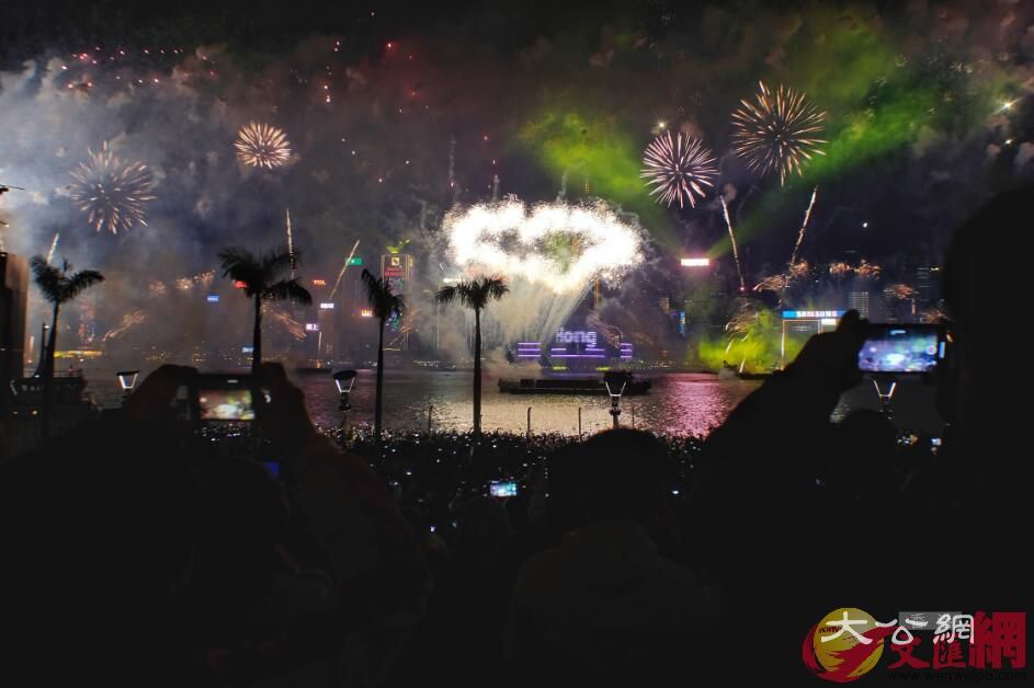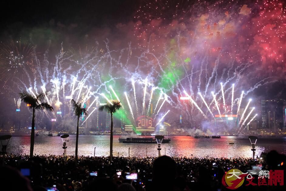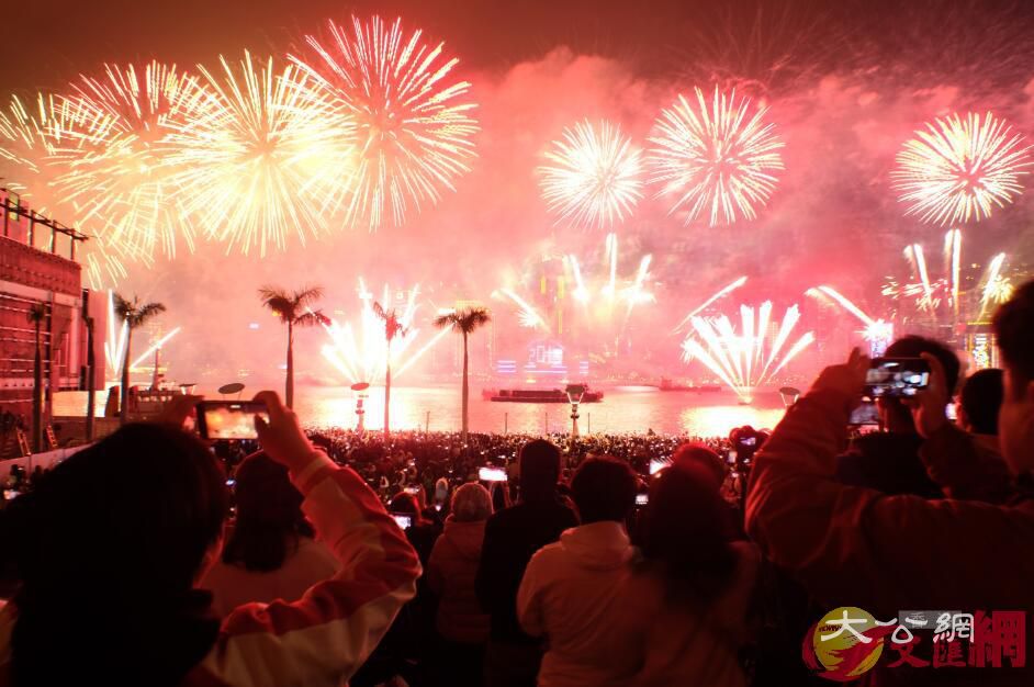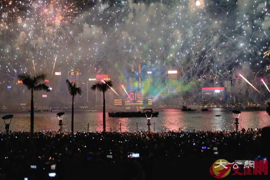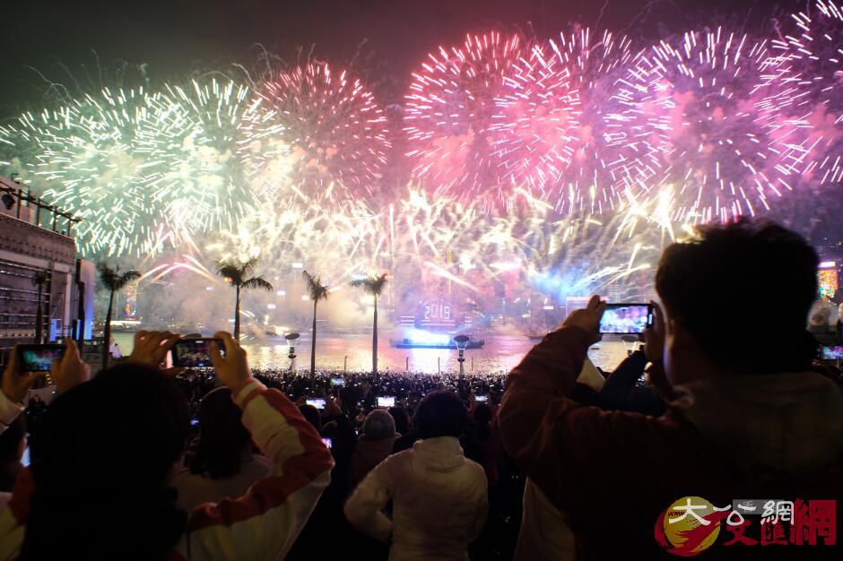 1月1日晚,由香港旅遊發展局主辦的跨年煙花匯演在維港上空上演。大批市民及遊客聚集到尖沙咀海濱,伴隨着午夜零時的到來,一起歡慶2019年的來臨。