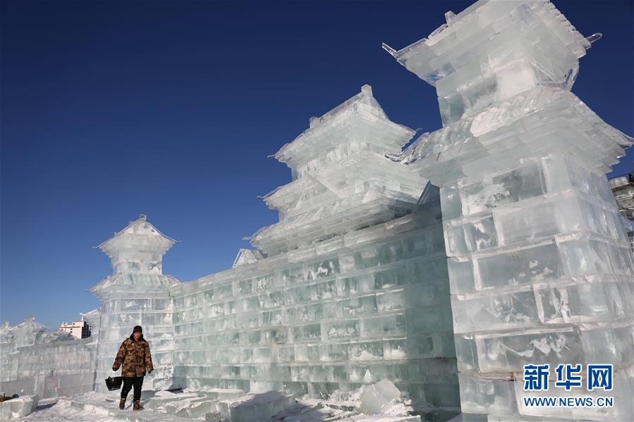 近日,在河北省承德市豐寧滿族自治縣大攤鎮,工人在精修雪雕。 承德市豐寧縣大攤鎮將於月底舉行冰雪主題的旅遊節。旅遊節以壩上冰雪景觀為基礎,將舉辦親子冰雪嘉年華、冰雪美食體驗、壩上廟會、冰雪遊樂總動員等一系列旅遊活動。