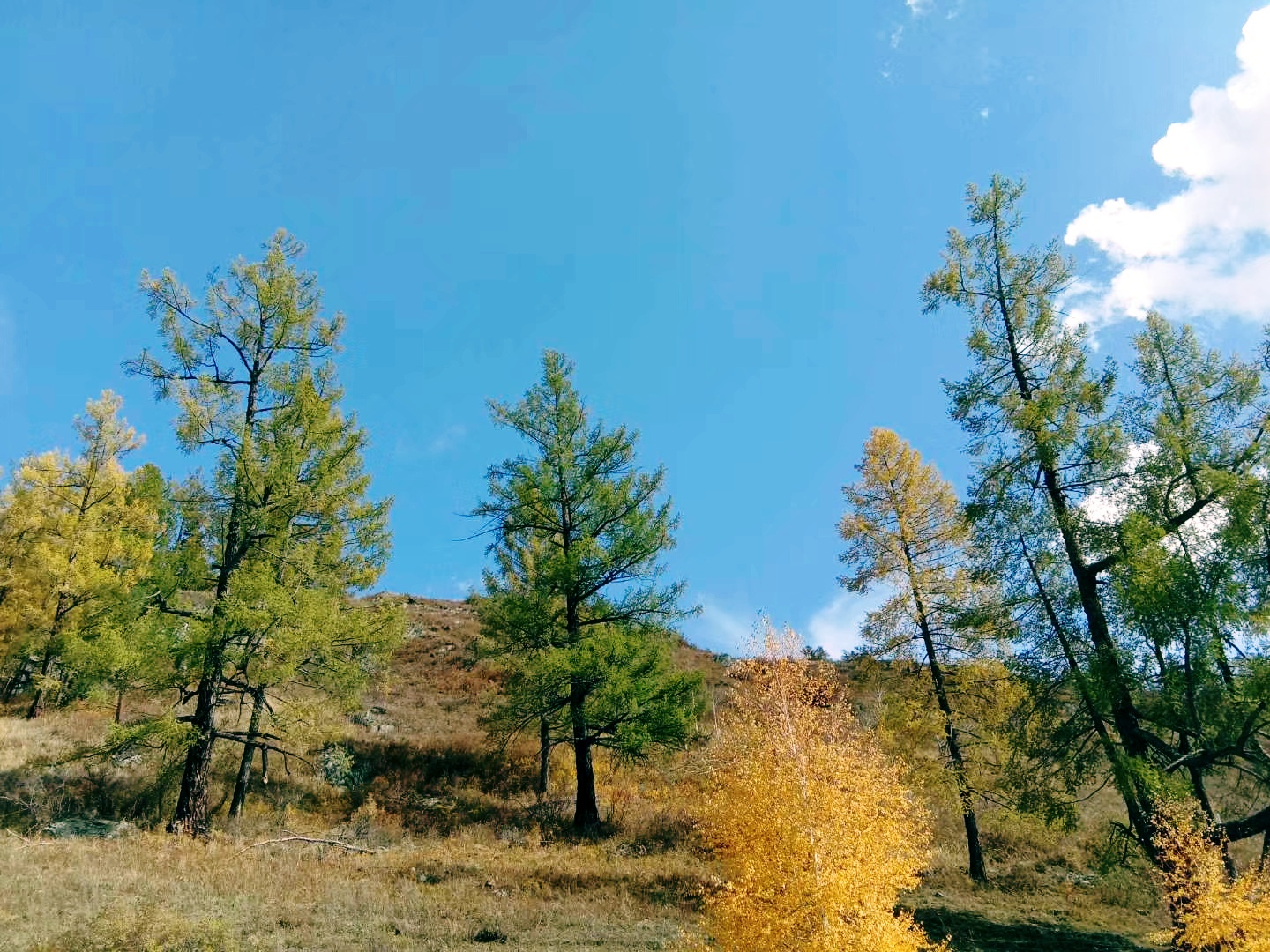 層林盡染的白樺林松林、雪山草地沖擊着你的視覺神經;
