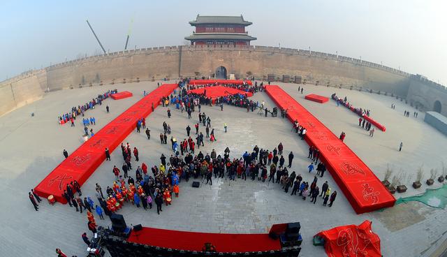 一幅巨大的春聯亮相石家庄正定古城長樂門文化廣場。新華社發(張曉峰 攝