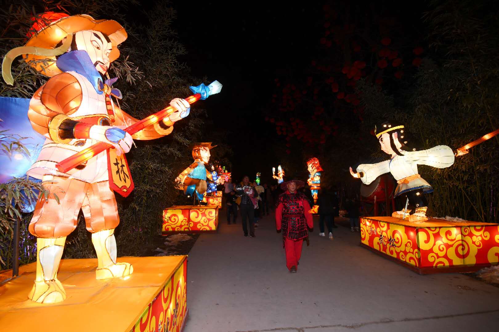 河南開封萬歲山除了人氣火爆的廟會活動之外,還攜手來自平遙的傳統花燈藝人為廣大遊客打造了一場以水滸文化為特色的多主題燈會活動,4大主題燈展區、60余組大型花燈造型、多場夜間大型演藝搭配全新園區亮化為廣大遊客帶來前所未有的賞燈體驗。