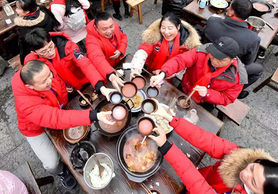 啟動儀式上,土家梯瑪大師舉行了新年祈福儀式,現場所有人戴上紅色圍巾,在祈福條上寫下自己的新年心願,全場高唱《我和我的祖國》,祝福祖國風調雨順,國泰民安。隨後開始的「千人同過土家年」圍攏宴會上,舉行了山歌敬酒、摔碗儀式、過火山等活動,大家歡聚一堂,載歌載舞,共同慶祝元霄燈會的開始。