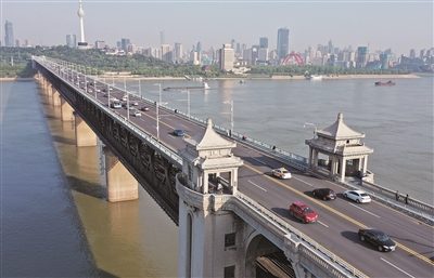 武漢長江大橋早高峰川流不息
