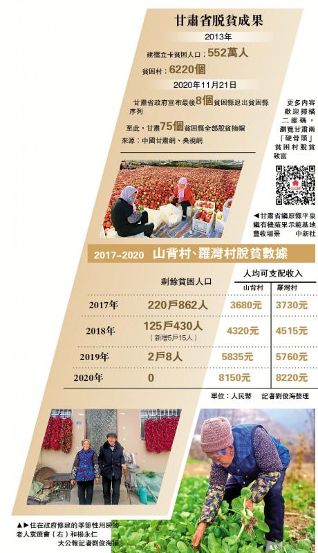 (大公報記者 劉俊海)「山是石頭山,插在雲裏面;田是卧牛田,掛在半山間……」作為全國最為貧困的地方之一,這句昔日在甘肅省隴南市宕昌縣廣為流傳的順口溜,不僅是當地山背和羅灣兩個山村自然條件的真實寫照,也道出村民們曾經的無奈。