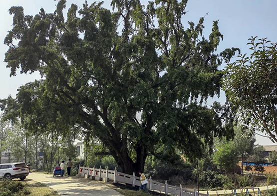 聖人閣前面有一棵巨大的銀杏樹,經考證也已有兩千多年,樹上碩果累累。67歲的黃夢春老人說,從他記事起這棵古樹就年年掛滿果子,惠澤鄉親,今年結的果子特別多。如今,古樹被村民精心保護起來,已成為村子裏的一景。