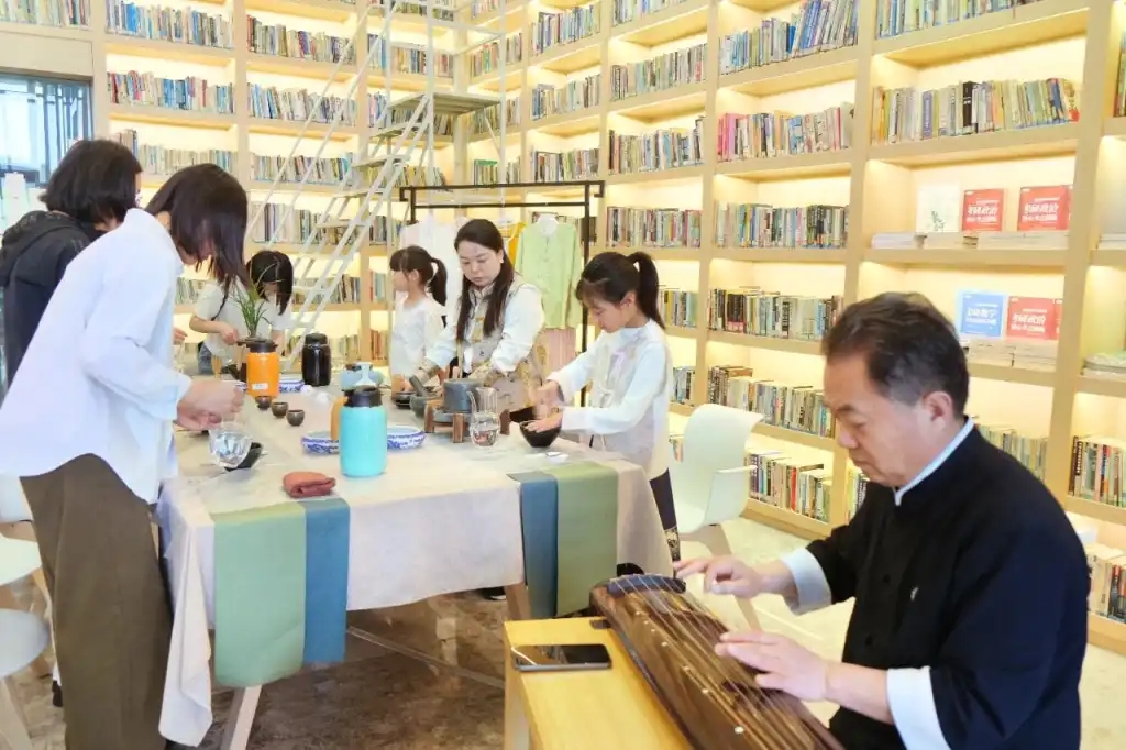 在河南省圖書館鄭東分館內舉辦的「古韻今音:書香與茶香間的文化之旅」也受到眾多讀者關註。古琴演奏的清音雅韻與茶藝師展示的精湛技藝,為現場的裊裊書香更添一抹清雅的中式文化韻味。