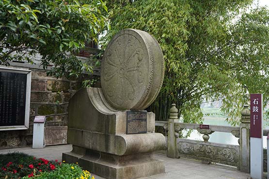 在書院內,復刻的一面巨大石鼓亦成為書院的標誌,記者在探訪過程中了解到,書院內這面石鼓,相傳曾經能夠敲響,但敲響石鼓即意味着戰事將近,遂后被百姓推入江中,現存於書院的復刻版石鼓是一面實心鼓,無法敲響,象徵着人們對和平的嚮往。