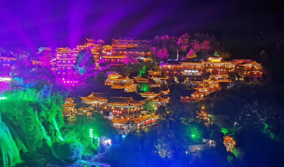 晚會舞台在被譽為「天使之瞳」的芙蓉鎮山水舞台基礎上進行重磅升級,設計了三層舞台、四大表演區域,瀑布、灘石、樹木、亭台皆為舞美,懸崖吊腳樓、景觀棧道皆是觀眾席,將天地、山水、舞台、演員與芙蓉鎮萬家燈火融為一體,場景炫目、氣勢恢宏!