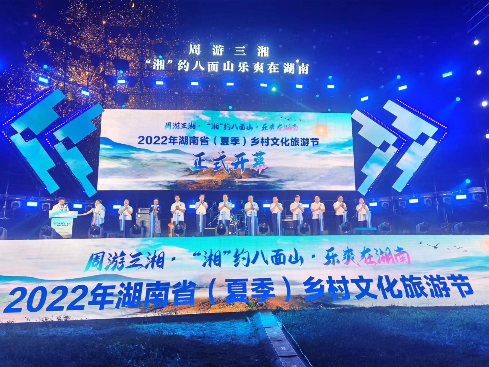 8月4日晚,「周遊三湘 湘約八面山·樂爽在湖南」2022年湖南省(夏季)鄉村文化旅遊節開幕式在湘西龍山縣八面山景區舉行。湖南省政協副主席易鵬飛出席開幕式並宣布活動開幕。湘西自治州委書記虢正貴、湖南省文化和旅遊廳副廳長張霞、龍山縣委書記時榮芬分別緻辭。開幕式由湘西州人民政府副州長馬碧主持。