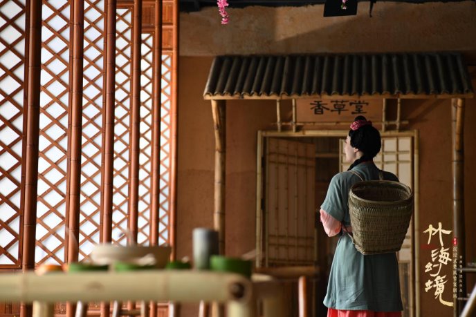 一趟《竹海幻境》的探班之旅將記者帶入了刻畫著「香草美人」的浪漫世界。在這裏,記者看到了遍布四處的香草元素,而代表君子氣節的竹子更是在劇場中扮演了不可或缺的重要角色。「竹子一生只開一次花,我願作一盞燈,陪夫子一同求索。」記者了解到《竹海幻境》的另一位主人公女媭,是桃江美人的代表,善烹飪、識香草,更懂得屈原詩中香草的思想寓意。這樣一位有着獨立靈魂、自身理想與內心追求的女子,在自己成年及笄之日,她選擇了讀書求索,只因「我信仰你的信仰」,希望與屈原並肩而行。