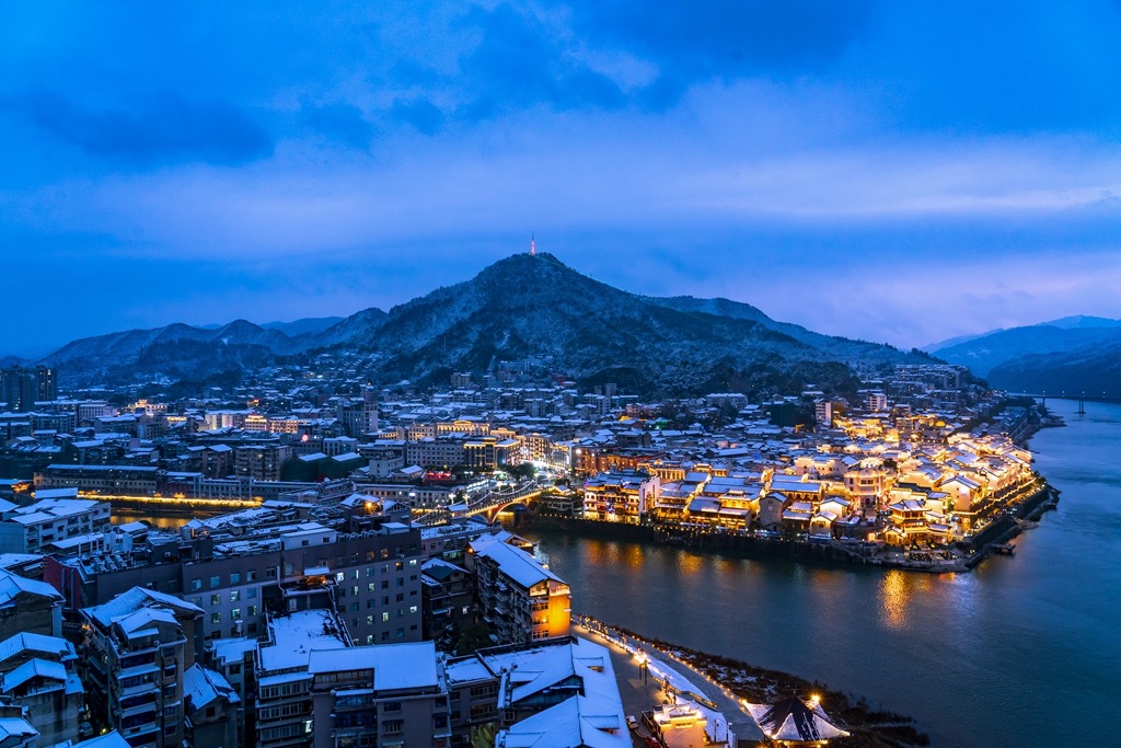夜幕降臨,華燈初上。沅巫之畔,洪江古商城「煙雨洪江」街區流光溢彩,格外迷人。