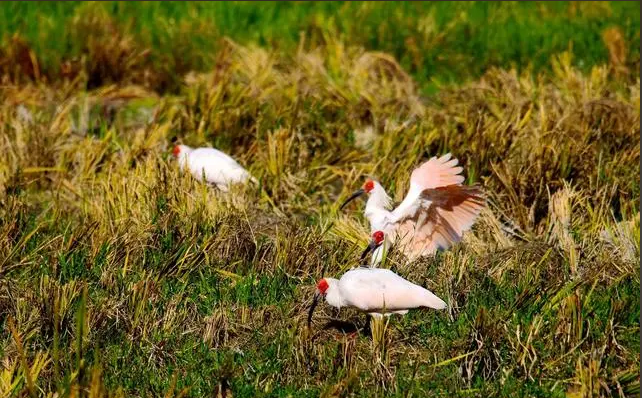 「『鹮田一分』,其實就是在朱鹮活動區的每畝稻田中留出一分地作為朱鹮的覓食區域。」崀山世界自然遺產管理局保護科副科長伍鍇向記者介紹,除了「鹮田一分」,崀山還通過「魚稻共生」等項目,進一步優化朱鹮棲息地的生態環境。