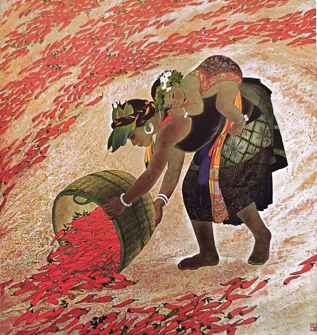 傳為美談的是,兩位老師多幅佳作,如鄭老師的《曬辣椒》《山雀》《故園情》,姜老師的《山外山》繫列作品之代表作《長江溯源》繫列精品,先後為中國美術館、中國國家博物館、中國國家畫院收藏。