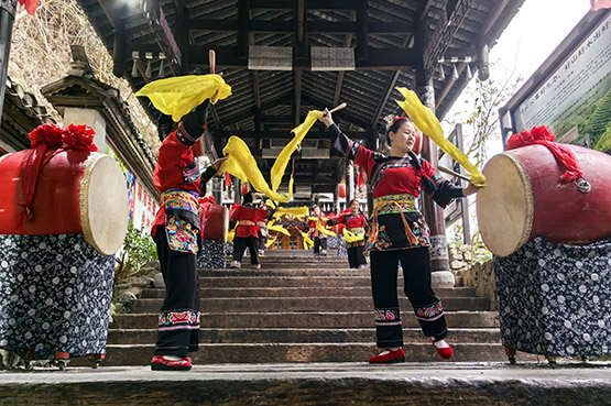 依託獨特苗族風情與茶山梯田,夯吾苗寨打造「茶園觀光+民俗體驗」品牌,年接待遊客近百萬人次,旅遊綜合收入達3.5億元。巫儺絕技、苗鼓互動讓遊客流連忘返。「以前種地糊口,現在家門口創業,收入比外出打工多!」龍光齊在寨裏經營特產商舖,加上土地租金、茶廠工資等,全家年純收入超6萬元。