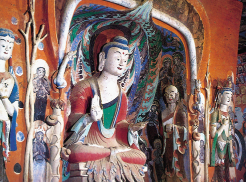敦煌藝術博大精深,氣勢宏偉。莫高窟的建築藝術完整地保存了千百年來的建築形式。莫高窟是集建築、雕塑、壁畫三位一體的立體藝術寶窟,內容極為豐富。歷代民間藝術家在繼承中原漢民族和西域兄弟民族藝術優良傳統的基礎上,吸收並融化了外來文化的表現手法,發展成為具有敦煌地方特色的中國民族風格的佛教藝術。這些規模宏大、為數驚人的宗教藝術品,為研究中國古代政治、經濟、文化、軍事、交通、地理、宗教、社會生活、民族關係、中外友好往來提供了浩如煙海的珍貴資料,是人類稀有的文化寶藏和精神財富。現在的735個洞窟中,有形式多樣的禪窟、殿堂窟、塔廟窟、影窟等形制。它是設置宗教雕塑和壁畫的神殿,是僧侶從事宗教活動的場所。從早期石窟所保留下來的中心塔柱式的外來形式的窟形,到隋唐時期開始消失。隋唐時期的石窟,典型的形制是平面方形,覆斗頂,后壁一龕。唐代后期以至宋元,壁畫佛龕又被洞窟中央的佛壇所代替,騰出一整塊石壁繪製大型壁畫。從建築形式的演變,反映了古代藝術家在接受外來藝術的同時,在不斷的藝術實踐中加以融化吸收,使它發展成為中華民族的形式,其中不少是我國絕無僅有的古建築傑作。