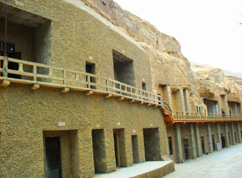 莫高窟,俗稱千佛洞,被譽為「20世紀最有價值的文化發現"、「東方羅浮宮",坐落在敦煌城東南25千米處的大泉河谷里,南北長約1600米。那鱗次櫛比、重重疊疊的洞窟猶如蜂巢嵌在刀削斧劈的斷岸上。窟前棧道蜿蜒曲折,樓閣巍峨兀立,鐵馬風鐸懸響,氣勢宏偉壯觀。以精美的壁畫和塑像聞名于世。