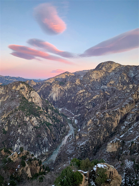 北京望京台日落:夕陽西下的山水沉浸在彩色夢幻中