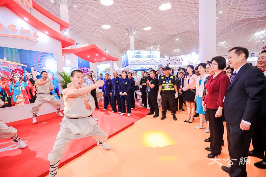 海南省人民政府副省長苻彩香海南省旅遊和文化廣電體育廳廳長孫穎、海南省政府副秘書長司海英、海南省旅遊和文化廣電體育廳副廳長曹遠新等一行特意來到河南展區,觀看了剛柔並濟的少林功夫、太極功夫和雜技的精彩展現,對河南的文旅產品和休閑旅遊發展給予了高度讚揚和充分的肯定。
