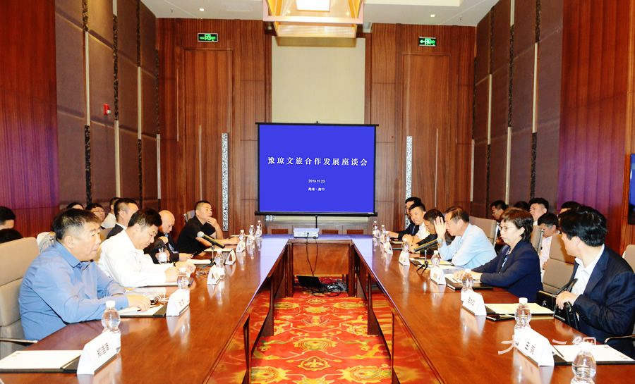 為相互借鑒學習文旅發展經驗,助推河南旅遊休閑業態產品轉型升級,加快構建以休閑旅遊業為核心的現代產業體系,深入推進豫瓊更緊密合作,河南省文化和旅遊廳還攜河南部分省轄市及縣區文旅部門負責人、重點景區和優秀旅遊企業及文創企業代表,與海南省旅遊和文化廣電體育廳相關負責人、2019年(第二十屆)海南國際旅遊島歡樂節節慶活動負責人,美食博覽會、休閑旅遊展會負責人,海南當地旅行商以及媒體代表等一起,舉行了豫瓊文旅合作發展座談會。河南省文化和旅遊廳廳長姜繼鼎、河南省文化和旅遊廳副廳長周耀霞、海南省旅遊和文化廣電體育廳副廳長曹遠新出席座談會。