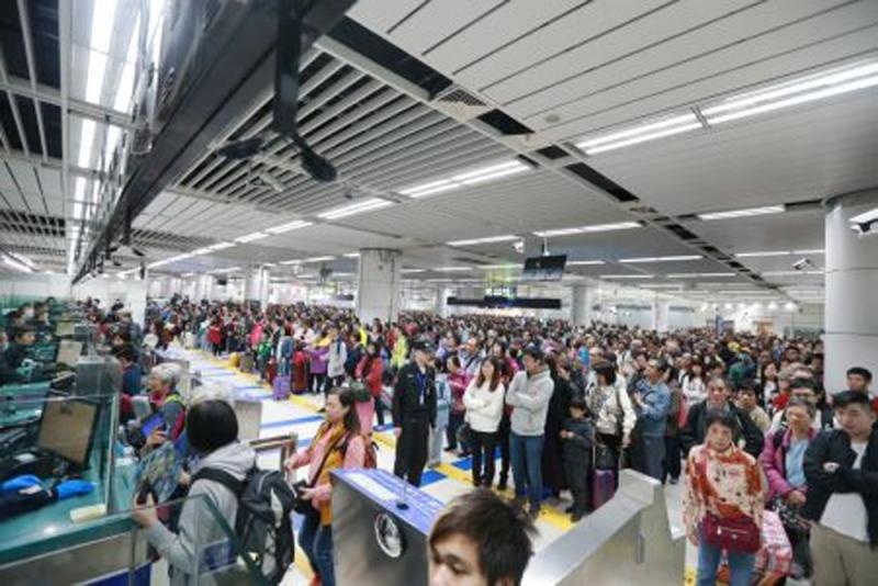 昨日上午八時許,深圳灣口岸入境大廳集中迎來大批香港居民,形成入境客流高峰。深圳灣邊檢站早已打開全部查驗通道,但持續激增的入境旅客,還是很快擠滿了整個查驗大廳。深圳灣邊檢站啟動應急預案,在開啟入境大廳臨時查驗台的基礎上,將出境大廳臨時查驗台也調撥至入境大廳,全力驗放入境旅客。至上午10時許,入境大廳客流達超飽和狀態,排隊候檢的旅客延伸至深港分界線香港一側,至11時許,客流逐漸平穩。