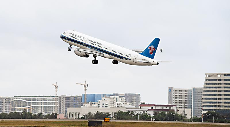 2月13日,一架航班從三亞鳳凰國際機場起飛\新華社