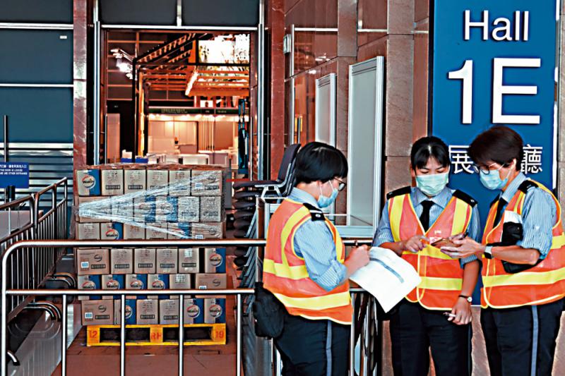 發局宣布書展延期舉行,書商昨日忙於將書本搬離會場\大公報記者文澔攝