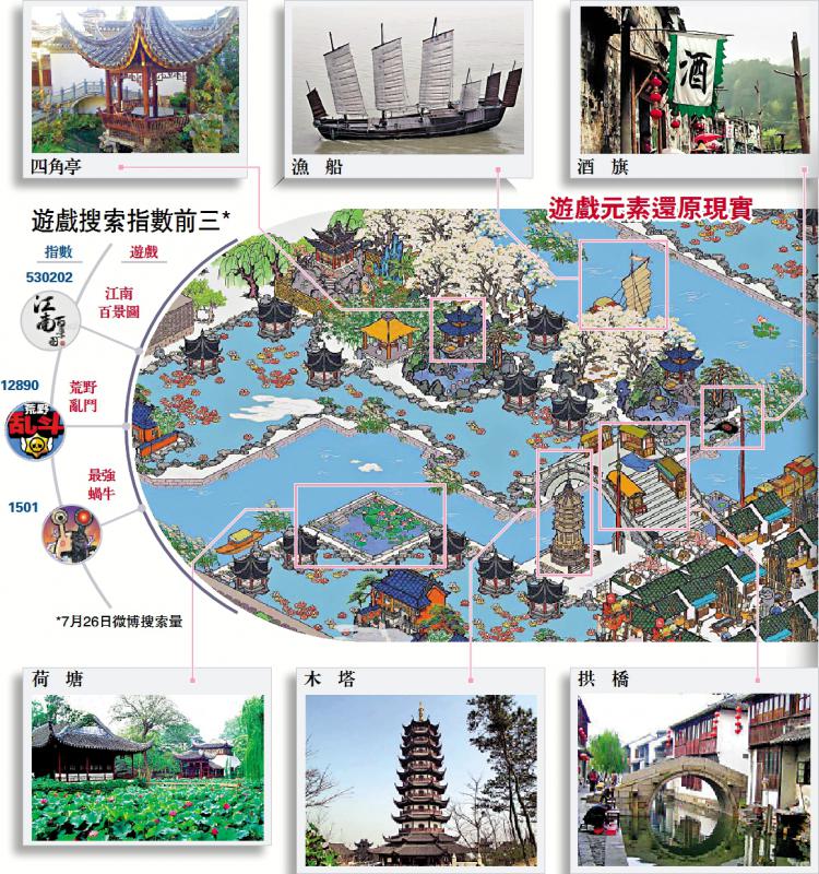 (大公報記者 曾萍)現實中中國被稱為「基建強國」,民眾對基建的熱愛也無法阻擋。最近,一款以明朝江南地區為背景、丹青水墨畫為畫面的遊戲——《江南百景圖》「火」了,網友們在遊戲裏樂此不疲地蓋房子、搞裝修。這款讓玩家成為江南小鎮設計師的「國風版」經營建築類遊戲,在微博上收穫超10億的閱讀量、超百萬的討論量。在微博江南百景圖的討論區,表情包、同人繪畫、同人文章、Cosplay甚至是衍生玩具層出不窮,持續不斷地為《江南百景圖》貢獻熱度。