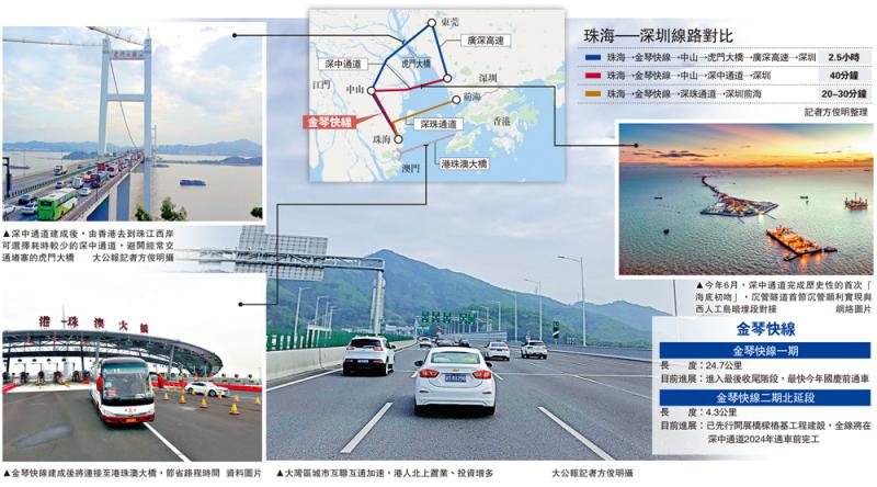 屆時,港人港車北上將更便捷,而港深中珠澳將構成一個「圈」型都市區。有在珠海、中山置業的港人估算,金琴快線建成後,港車從香港到中山等地最快僅需約50分鐘。