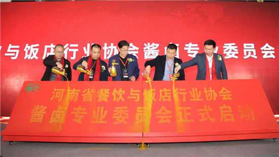 河南省餐飲與飯店行業協會秘書長宋春亭宣讀河南省餐飲與飯店行業協會醬鹵專業委員會(以下簡稱「醬鹵專委會」)批複文件,河南省餐飲與飯店行業協會會長張海林致辭。