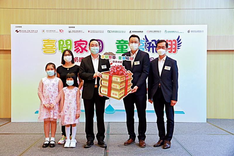 「喜閱家園 童夢飛翔」圖書捐贈儀式昨日在油尖旺多元文化活動中心舉行,這次活動由聯合出版集團與新家園協會合辦,近6000冊中英文圖書內容涵蓋童書、親子教育、語言學習、中華文化、小說等多元題材。聯合出版集團副董事長兼總裁李濟平、副總裁李家駒,新家園協會總幹事黃頌等出席捐贈儀式。
