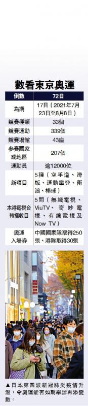 另外,日本第四波新冠肺炎疫情升溫,周二單日新增6197宗確診,連續四天單日新增破6000宗,多個地方聖火傳遞活動也受影響,能否如期舉辦奧運再添變數。