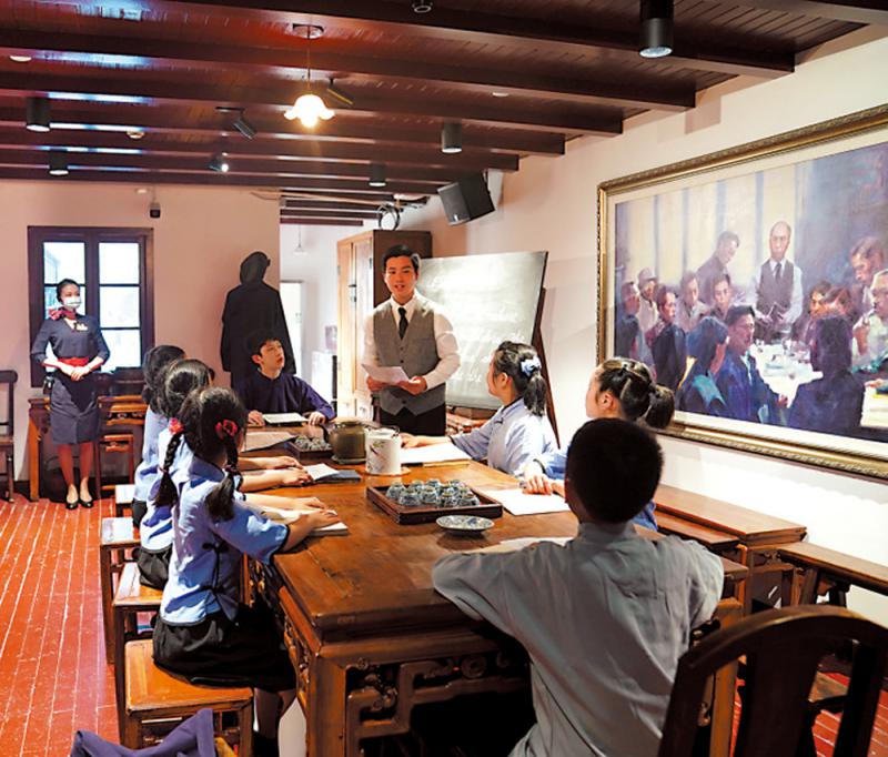 圖:中共四大紀念館小講解員在場景再現廳演出情景劇。\新華社