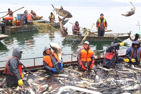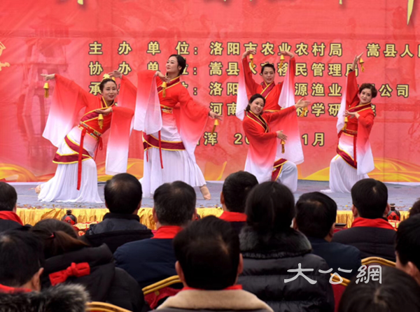 開幕式后又進行了優美的歌舞匯演、庄嚴的祭湖醒網壯行儀式,在5萬畝水域的陸渾湖中心開展巨網捕撈、收穫新年第一網,成為現場魚躍人歡的景觀,最後是鮮味魚宴品嘗、優質水產品展示。觀眾在現場既可以欣賞歌舞,領略濃郁的漁業文化,又可觀看到壯觀的捕撈場景。