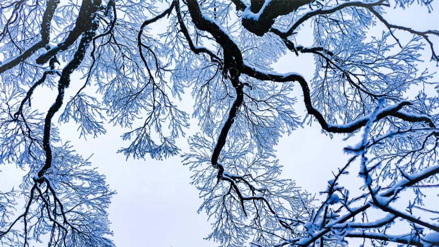 據洛陽白雲山景區副總經理程芳介紹,今年的第一場雪,給白雲山帶來了夢幻般的冰雪奇境。記者從刷爆朋友圈的白雲山視頻看到,雪後初晴,蔚藍天空明凈和深邃,千里伏牛銀裝素裹,白朵飄落山嶺溝壑。漫步森林氧吧、穿梭山野之間,隨處可見玉樹瓊花、晶瑩霧凇,美不勝收。玉皇閣直抵蒼穹,潔白和金黃的楹柱交相輝映,成了真正的玉宇瓊閣,美輪美奐。這童話般的世界吸引着前來賞雪遊玩的遊客拿出相機,定格這夢幻的雪後美景。