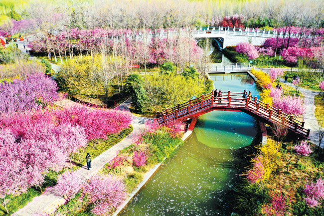 3月21日,洛陽市隋唐城遺址植物園百花盛開,景色如畫,令遊人陶醉。(侯建平 攝