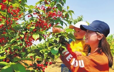 連日來,在河南省宜陽縣香鹿山鎮櫻桃溝村,千畝櫻桃陸續成熟。一顆顆晶瑩剔透的大紅櫻桃掛滿枝頭,讓人垂涎欲滴,吸引了不少遊客前來觀光、採摘。近年來,香鹿山鎮大力發展櫻桃產業,形成了千畝櫻桃產業扶貧示範園,帶動162戶貧困戶增收。馮榮國攝影報道