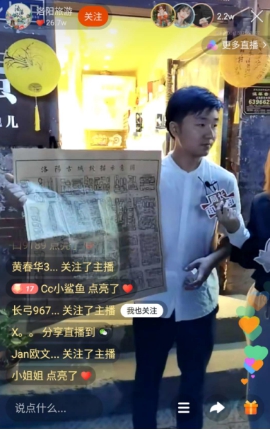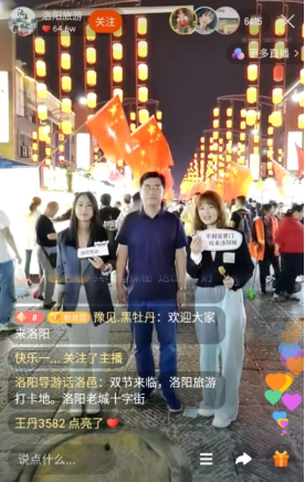 在28日的直播中,胡大鵬和「一朵文藝芸」一路從書畫街逛到魏家街,再到十字街,為大家一一介紹洛陽古今輝映、文化交融的城市特色,其中既有三彩藝術博物館、古都文創店等店舖中的洛陽特色文創產品,也有牡丹鮮花餅、銀絲酥、燙面角等洛陽知名美食,更有街舞、歌曲演唱等街頭表演,處處都透露着「古都新生活,時尚洛陽城」的無限魅力。