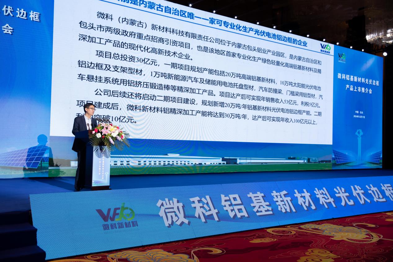 為加快推進包頭鋁精深加工產業高質量發展,積極推動以鋁產業為核心的第四個千億級產業集群建設,踐行包頭新能源光伏產業規模化集群化協同發展新思路,12月16日至17日,微科鋁基新材料光伏邊框產品上市推介會在內蒙古包頭市舉行。