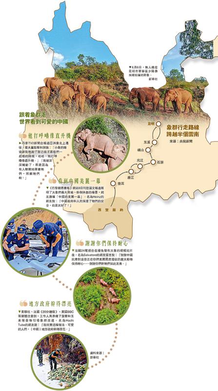 十多頭原本棲息在中國雲南省西雙版納州的野生亞洲象走出叢林,向北遷徙數百公里,這一趟大象「奇幻旅程」,讓各方一睹中國推動野生保育的耐心、愛心和創意。