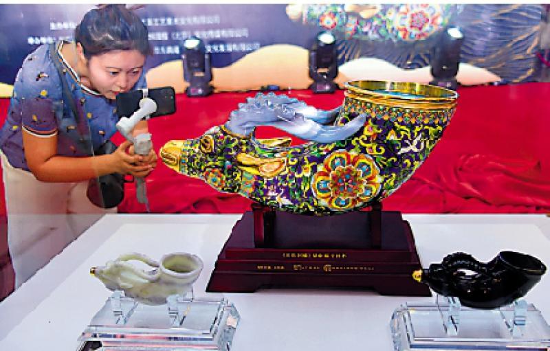 以國寶「鑲金獸首瑪瑙杯」為原型創作的《富貴恆通》獸首杯。\大公報記者李陽波攝