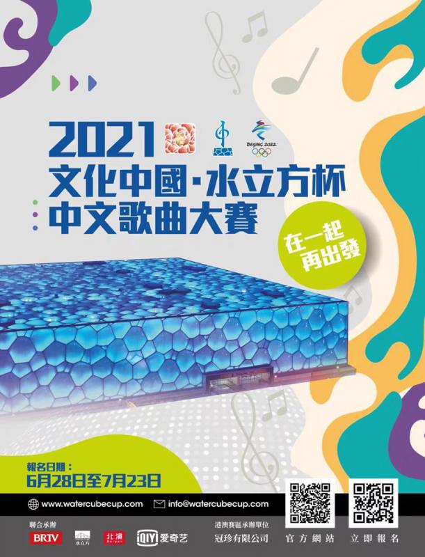 由「文化中國.水立方杯」中文歌曲大賽組委會主辦,「2021年『文化中國.水立方杯』中文歌曲大賽」正式啟動,中國香港賽區青少年組由即日起至7月23日接受報名。