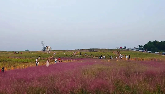 小嶺南粉黛亂子草花海初露美顏,吸引市民前來打卡。蜀山區委宣傳部供圖。